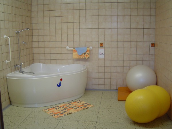 Během pobytu na porodním sále jsou k dispozici rehabilitační míče, žíněnka, relaxační pomůcky, v případě zájmu i možnost pobytu během I. doby porodní ve vaně.